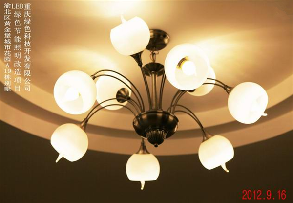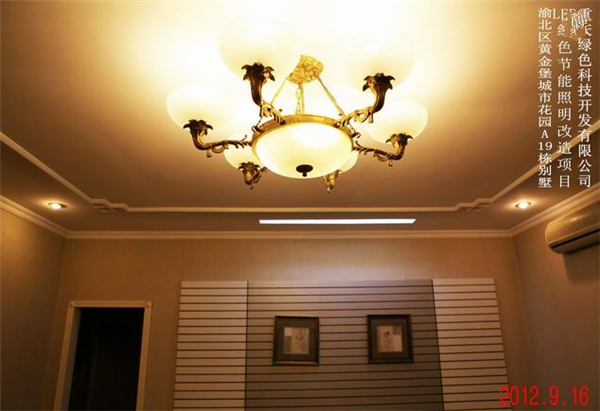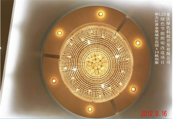 我司在渝北區黃金堡城市花園A19棟別墅實(shí)施的LED綠色節能照明改造案例實(shí)景圖